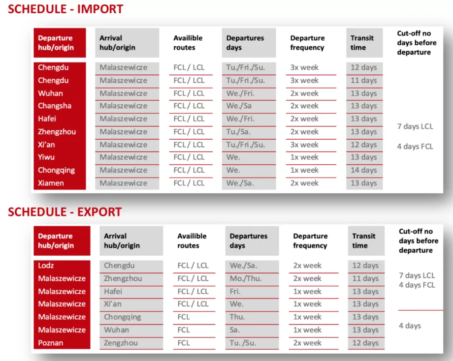 Available FCL and LCL services to Malaszewicze